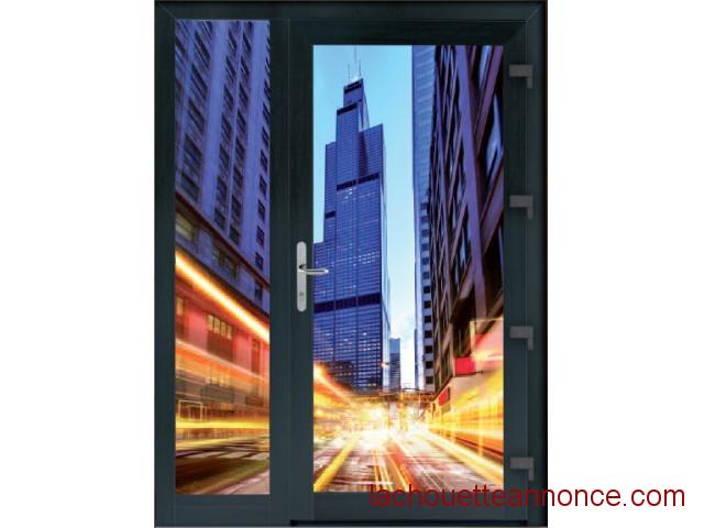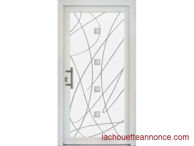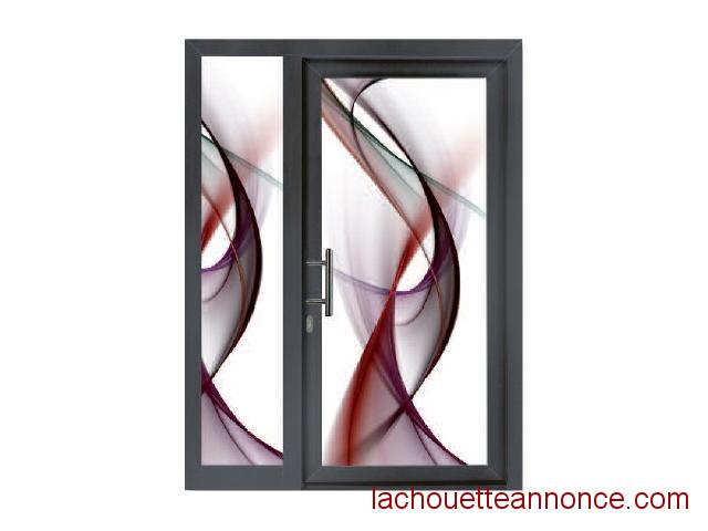 Grand choix de porte d'entrée PVC ou Aluminium haut de gamme et sur mesure avec panneau de porte entièrement vitrée.