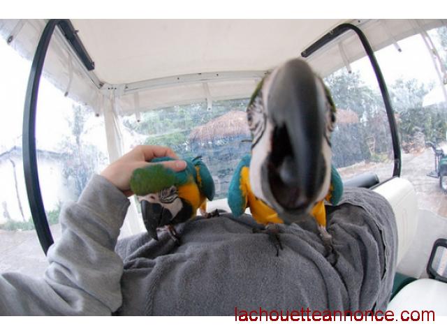 Donne contre bons soins couple de perroquets ara bleu et jaune Eam testé maladie néant,âgé de 8 mois,vacciné,vermifugé et pucés.ils sont en bonne santé,chantent la marseillaise et prononce quelques mots tels que bonjour,etc...Plaisantin s'abstenir