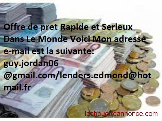 prêt le montant exact que vous souhaiteriez et la date.Veuillez nous écrire pour votre demande ou avoir plus ample de connaissance sur notre offre personnels
