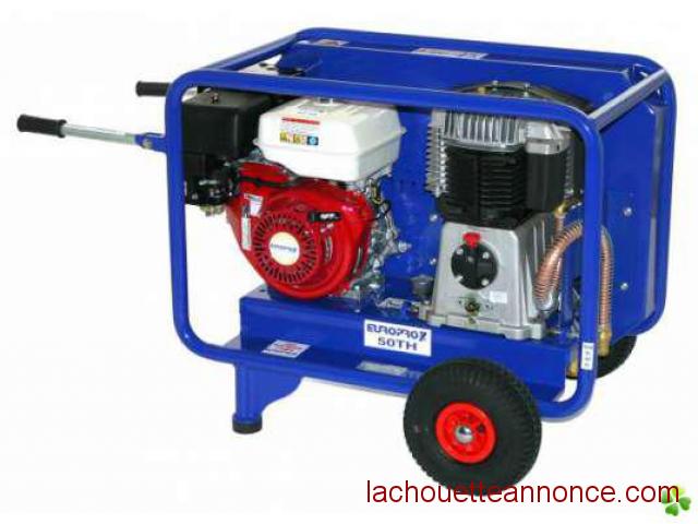 Le compresseur europro 50th est un appareil conçu pour une utilisation intensive sur tout type de chantier. equipé d'un moteur thermique, il fonctionne au sans plomb 95. il possède une valve autonome qui gère la pression à l'intérieur de la cuve, une sortie d'air avec demi-raccord express et 4 bras de transport rabattables.